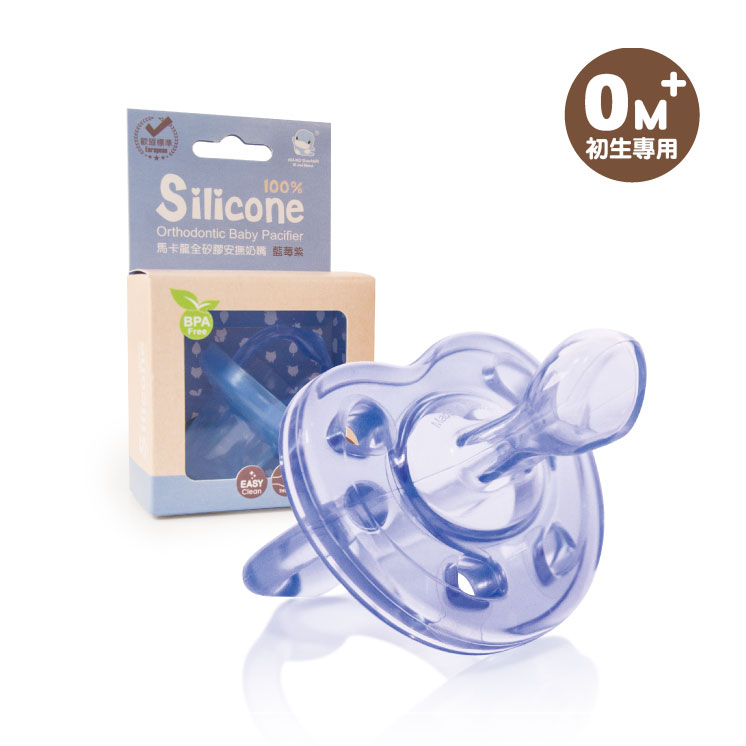 KUKU酷咕鴨 馬卡龍全矽膠安撫奶嘴-初生-藍莓紫
