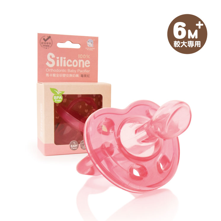 KUKU酷咕鴨 馬卡龍全矽膠安撫奶嘴-較大-莓果紅